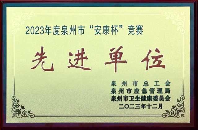 福建鴻官公司榮獲泉州市“安康杯”競(jìng)賽先進(jìn)單位